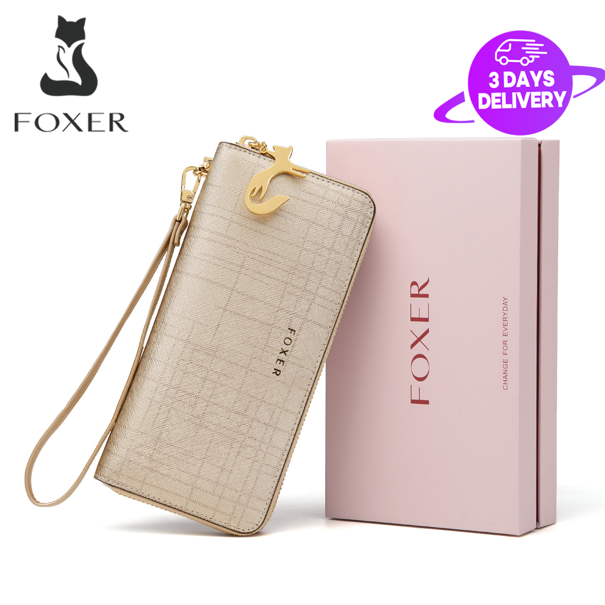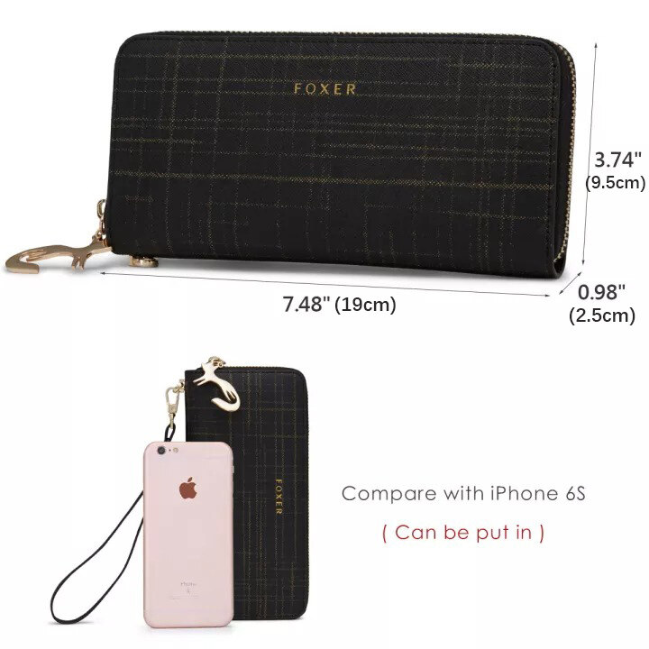 FOXER Women Cow Leather Long Wallet Wallet Clutch Wallet with Wristlet Card Holder Coin Purse Cellphone Bag Female Clutch Bags