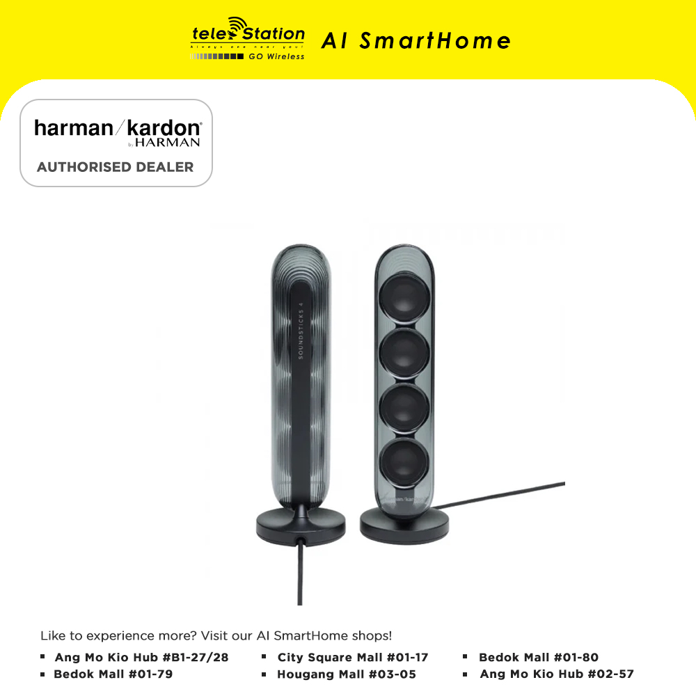 Welcome a timeless icon into your home with Harman KardonSoundSticks 4. Extraordinary sound meets sculptural design in this one-of-a-kind audio masterpiece from the legendary Harman Kardon brand. Bring harmony into your living space with unparalleled sound quality and beautiful transparent materials. Highly regarded as a true work of art by passionate audio enthusiasts around the globe, Harman Kardon SoundSticks 4 is a stunning system that fills your space with vibrant treble and incredible bass. Transform the look and sound of your life and experience music in a new, exceptional way.
