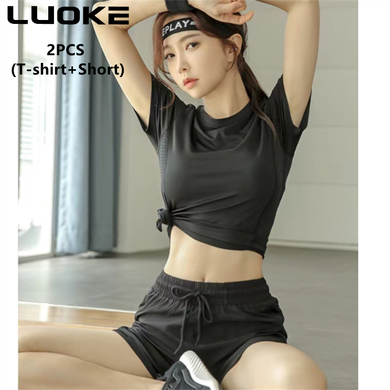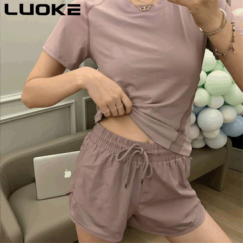 LUOKE Yoga Pants for Women 运动套装女 Two Pockets Exercise Tight Gym Cycling Sports Shorts Jogging Short Pants for Women sport pants for womenRunning 2 In 1 Shorts