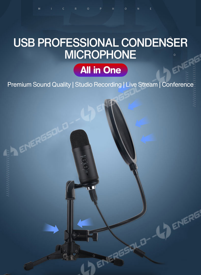 【SG ReadyStock】Energsolo Condenser Professional USB Microphone with Tripod for PC Mac Laptop (Designed in SG) Studio Mic Voice Recording Computer Podcast Live Streaming Wired Zoom Teleconference Singi