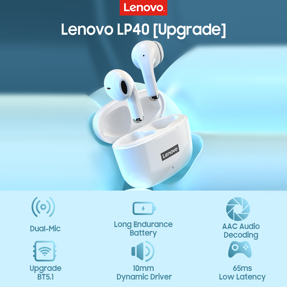 Lenovo Wireless Earbuds Bluetooth Earphone Headset Handsfree With Microphone for Mobile Phones Iphone Apple Android