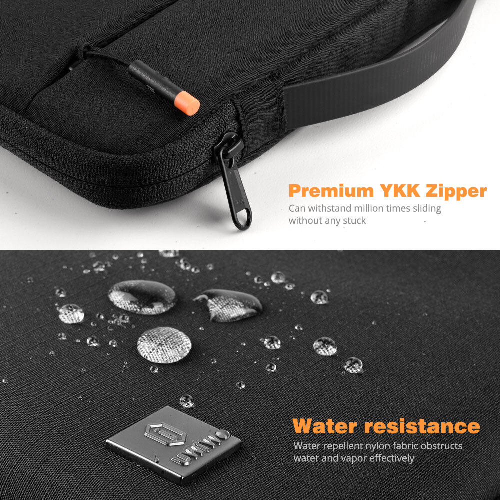 1:The corner patent design protects your laptop from bumps and drops in potential accident. 2: SBS water resistance zipper 3.Retractable waterproof TPU handle, firm and scratch resistant (commonly used in car trailer ropes) 4.Bubble and faux fur lining protection 5.Water-resistant material 6. 2 compartment zipper design, organizer your accessories well 7.Front Pocket with elastic keychain inside, it's convenient.