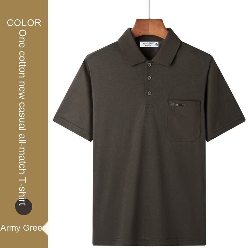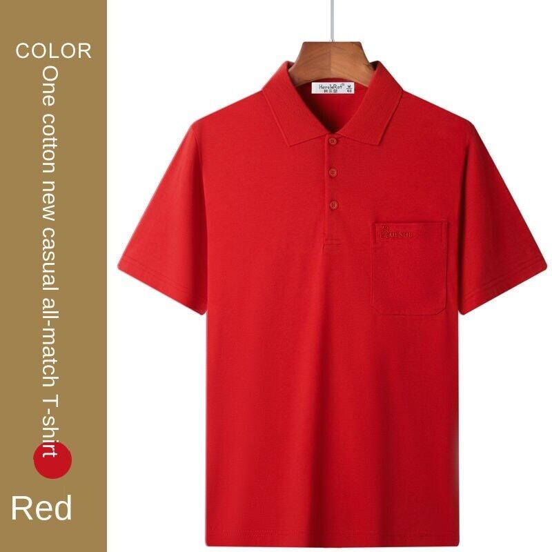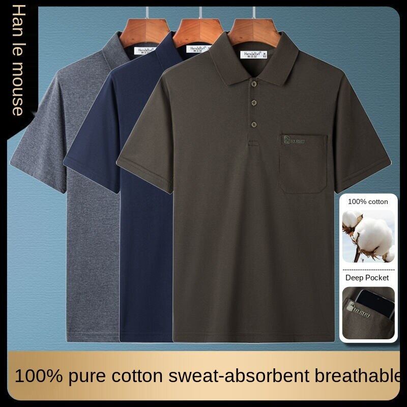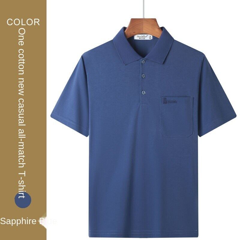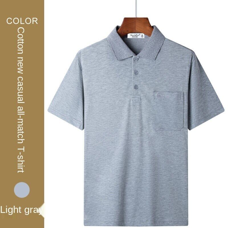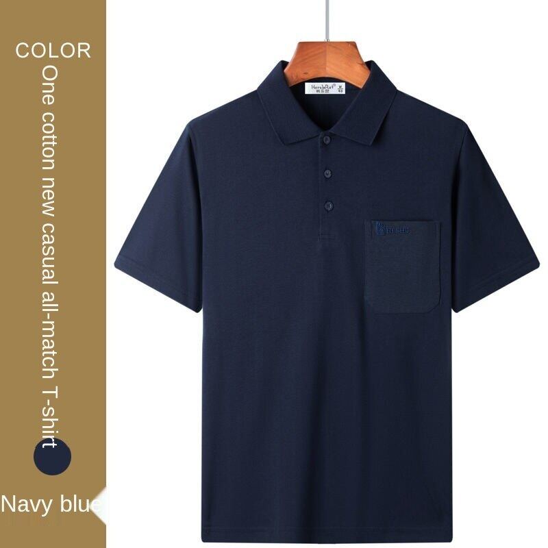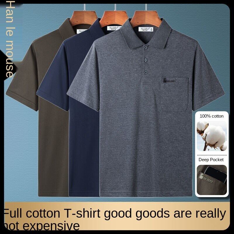 Cotton short-sleeved T-shirt men's lapel polo shirt dad's summer wear middle-aged and elderly men's top clothing loose real pocket
