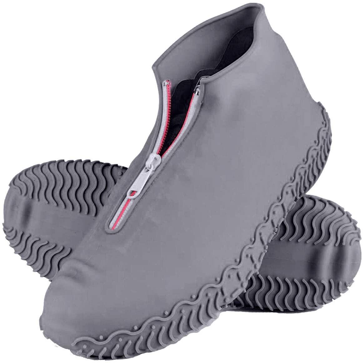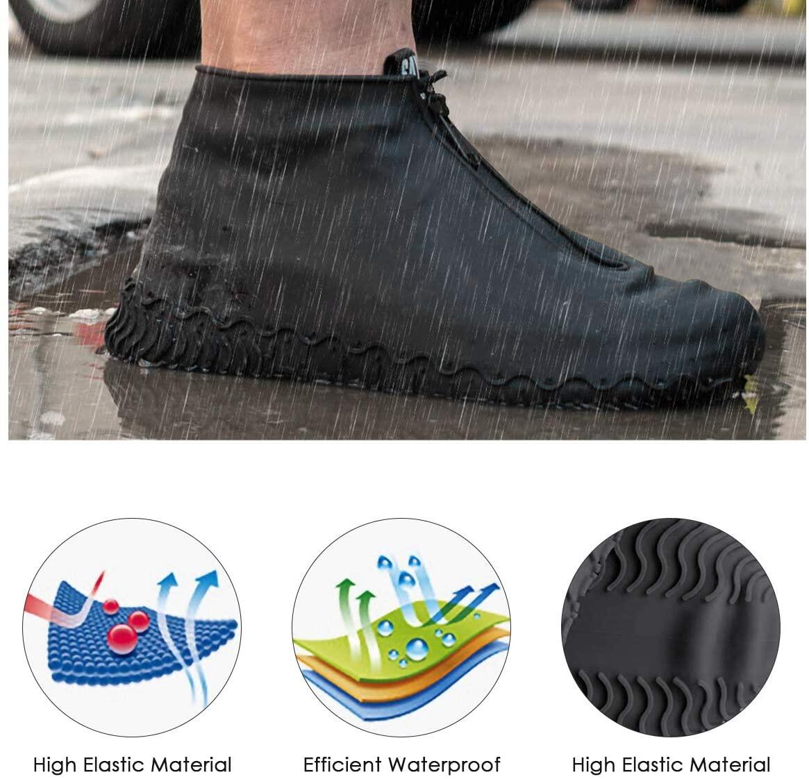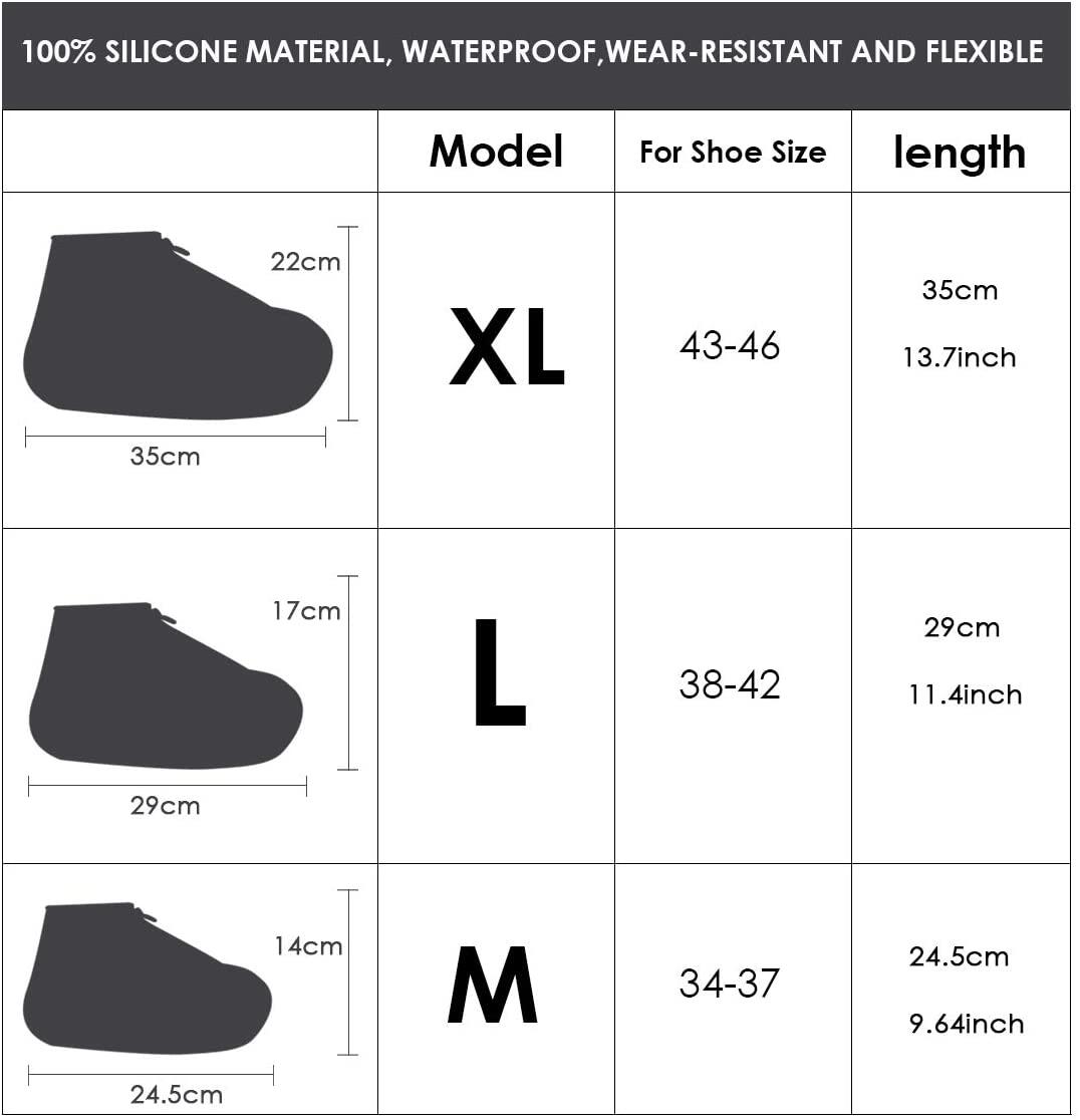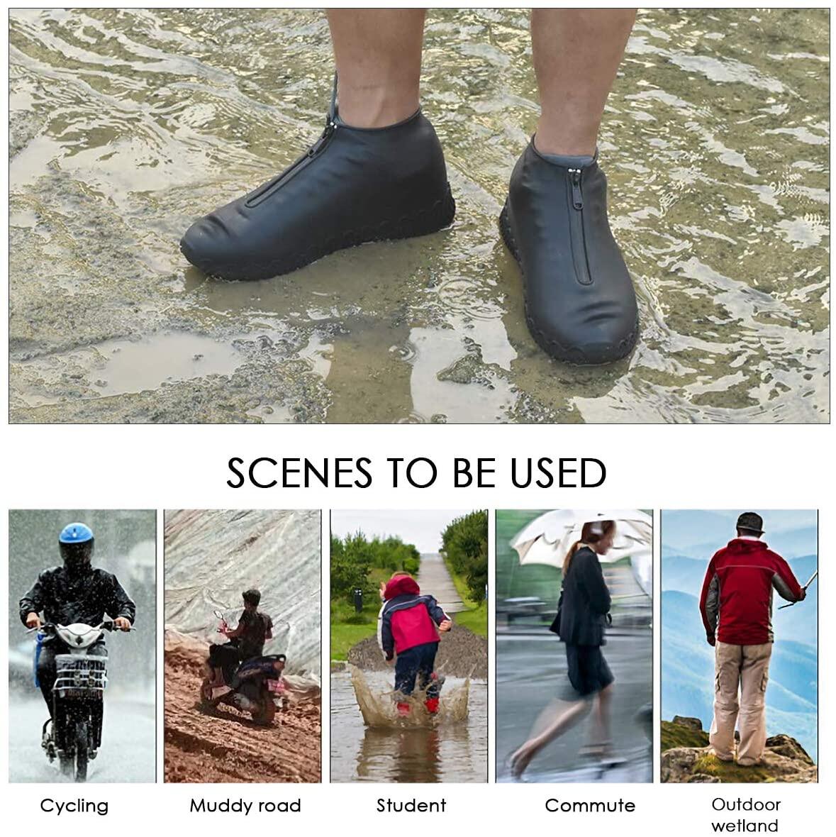 Reusable Shoe Covers, Silicone Waterproof Overshoes with Zipper, Outdoor Shoe Protectors Not-Slip Rain Galoshes for Men Women