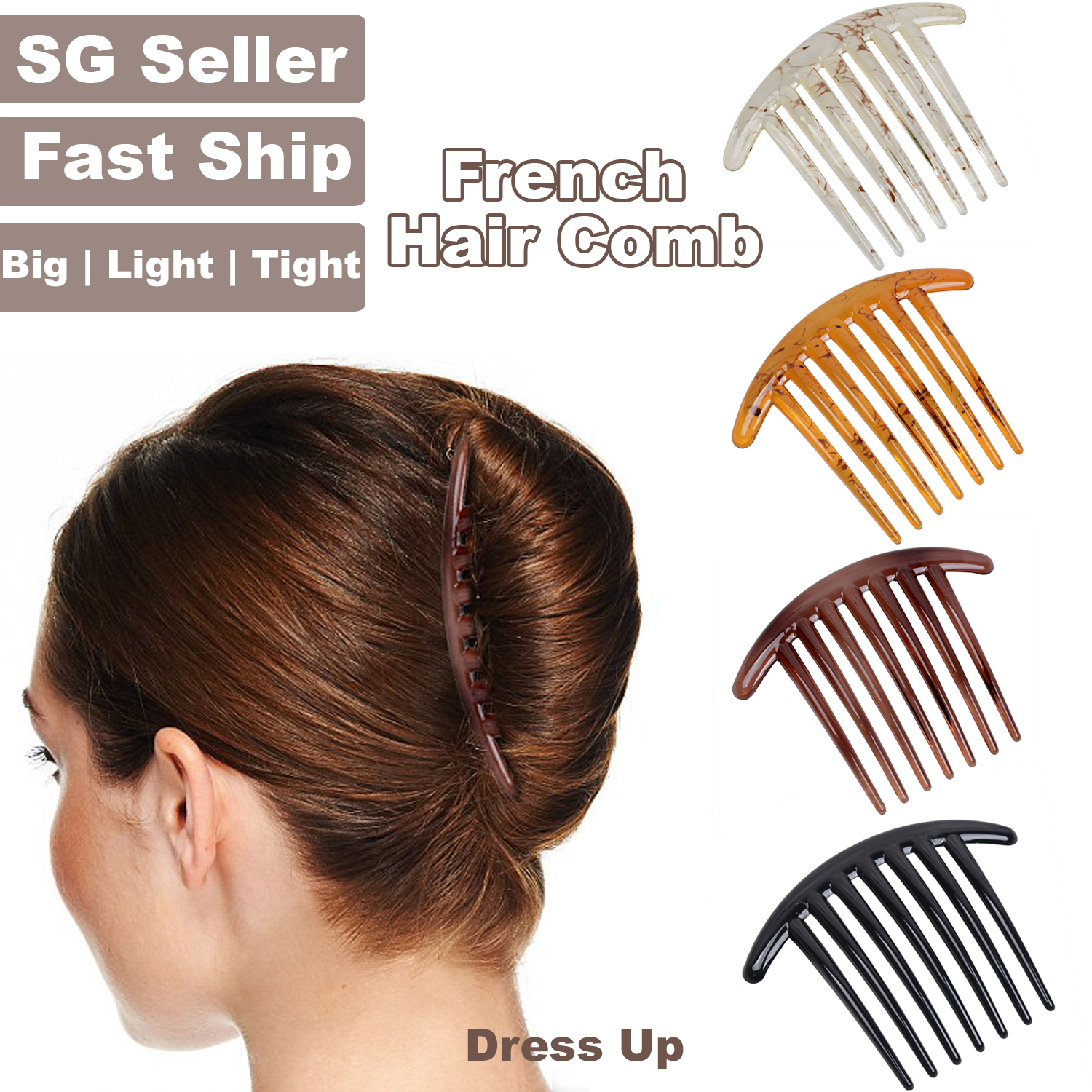[SG | Extra Firm] 10cm Large Bar French Pleat Hair Style Hair Comb, 7 Teeth Elegant Stewardess Hairstyle Chignon Hair Comb