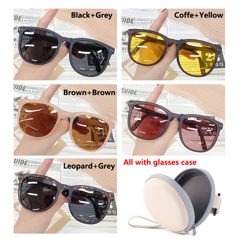 IMPALA PG1645Y Fashion Korean Style Polarized Foldable Sunglasses for Women HD Lens Sun Glasses with Cute Round Glasses Case Anti Glare UV400 Protective Sun Glasses