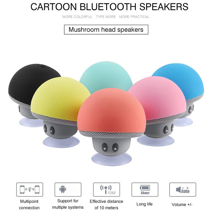 Kebidumei Cute Portable Mini Mushroom Wireless Bluetooth Speaker Stereo Subwoofer Silicone Suction Cup Loudspeaker Phone Holder Audio with Mic