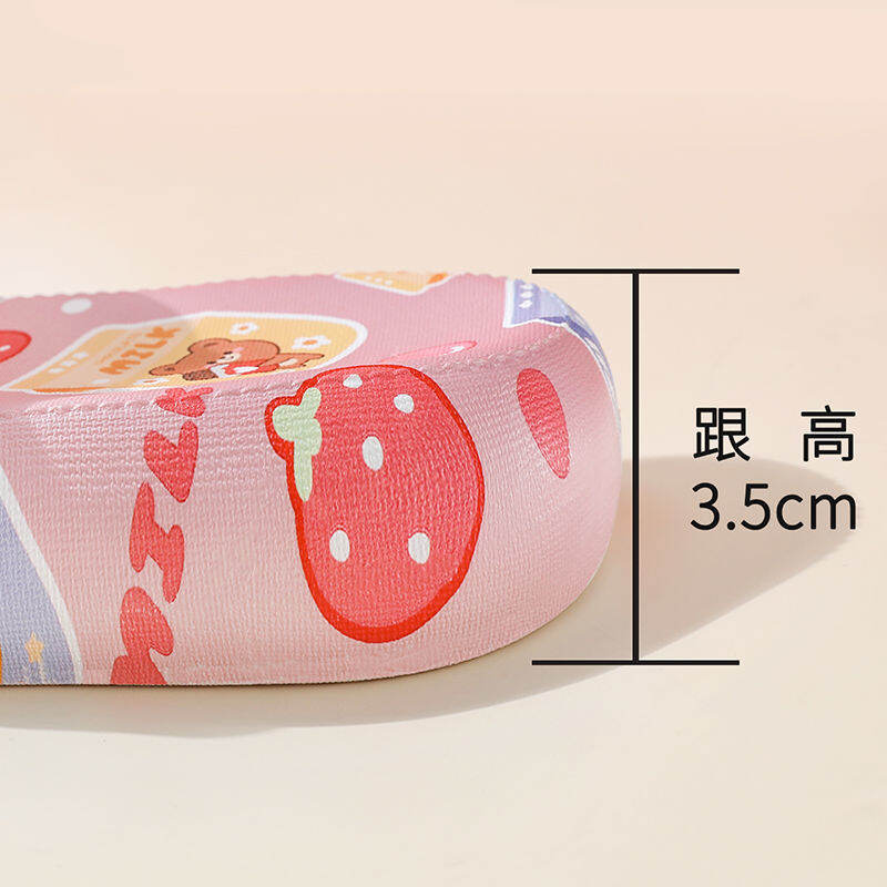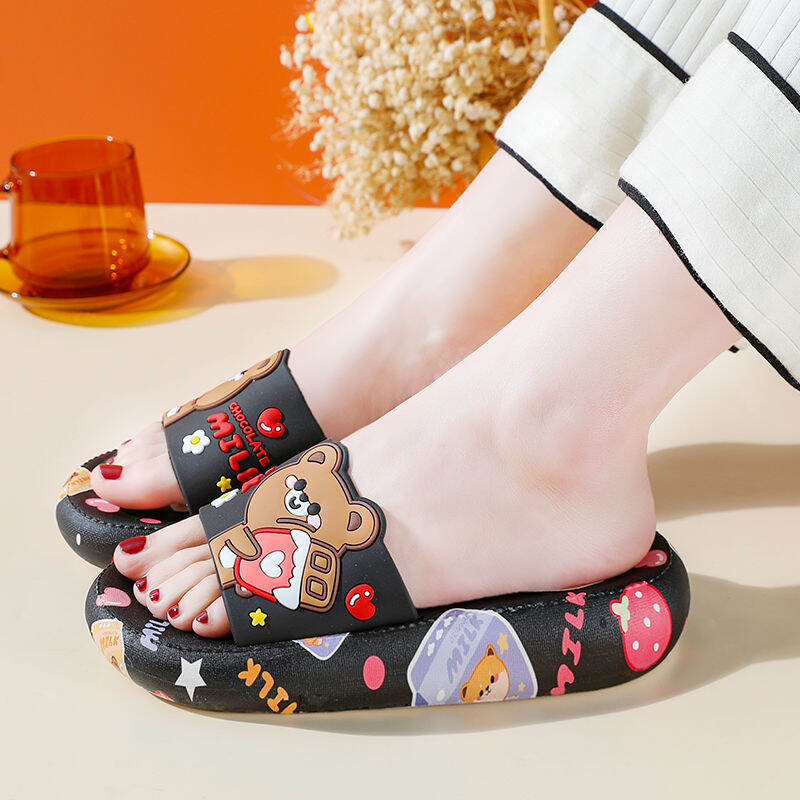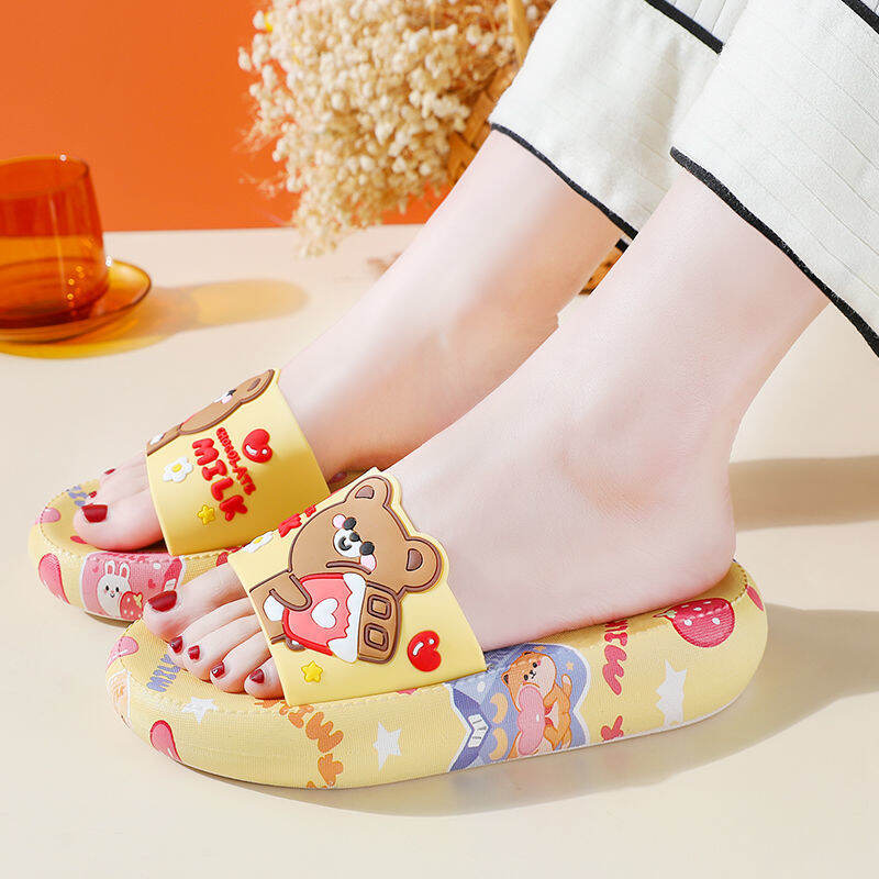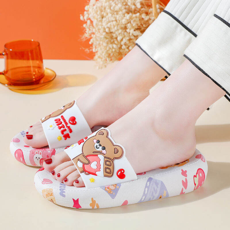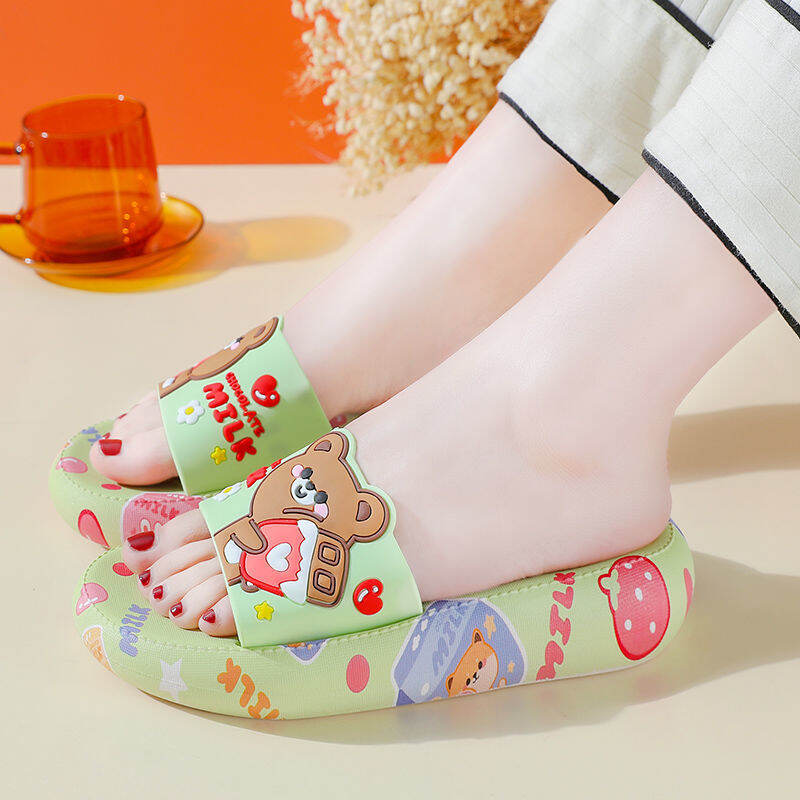 High Heel Slippers for Women Summer Home Korean Style Student Cartoon Cute Bear Bathroom Slippers Non-slip Soft Bottom Outer Wear