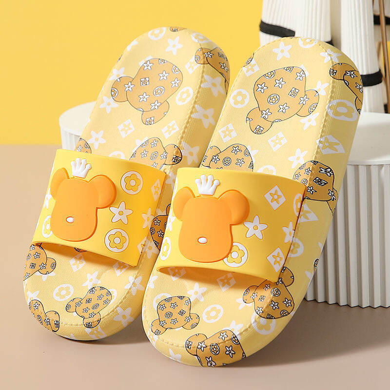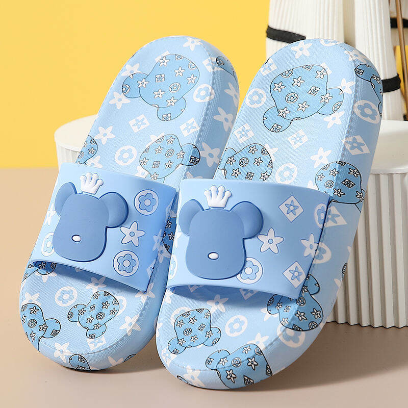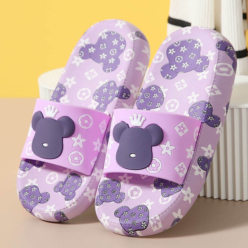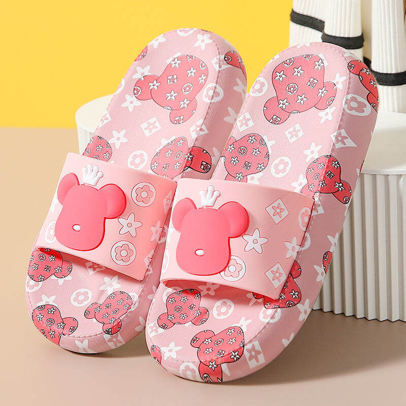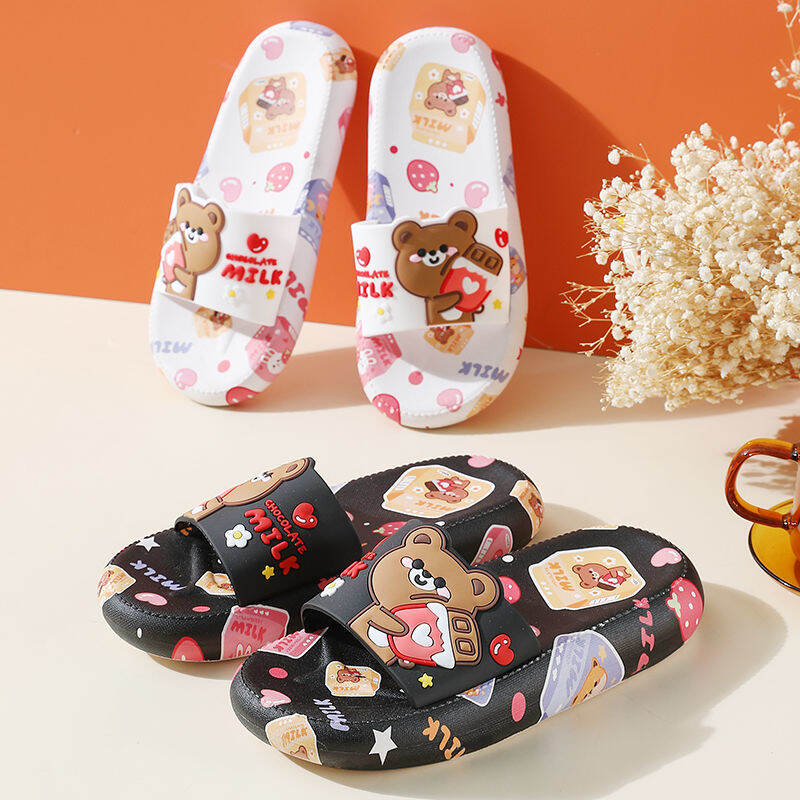 High Heel Slippers for Women Summer Home Korean Style Student Cartoon Cute Bear Bathroom Slippers Non-slip Soft Bottom Outer Wear