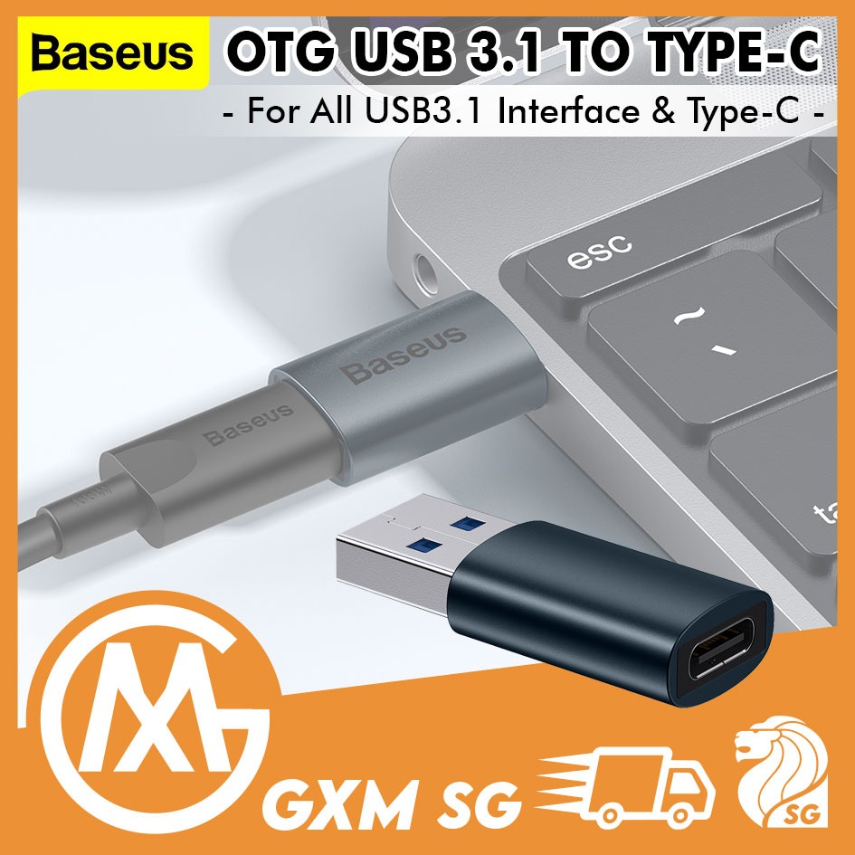 BASEUS OTG Adaptor USB to USB C Type-C to USB 3.1 Black Ingenuity Series Converter Smartphone Phone Laptop Mouse Keyboard Harddrive Tablets
