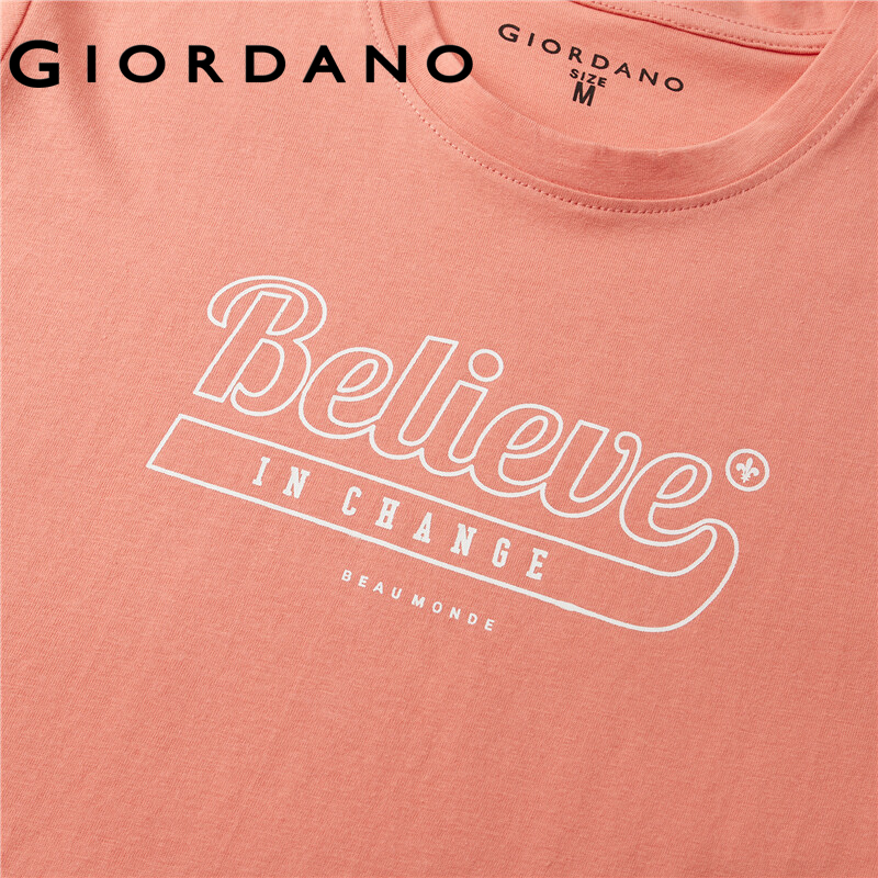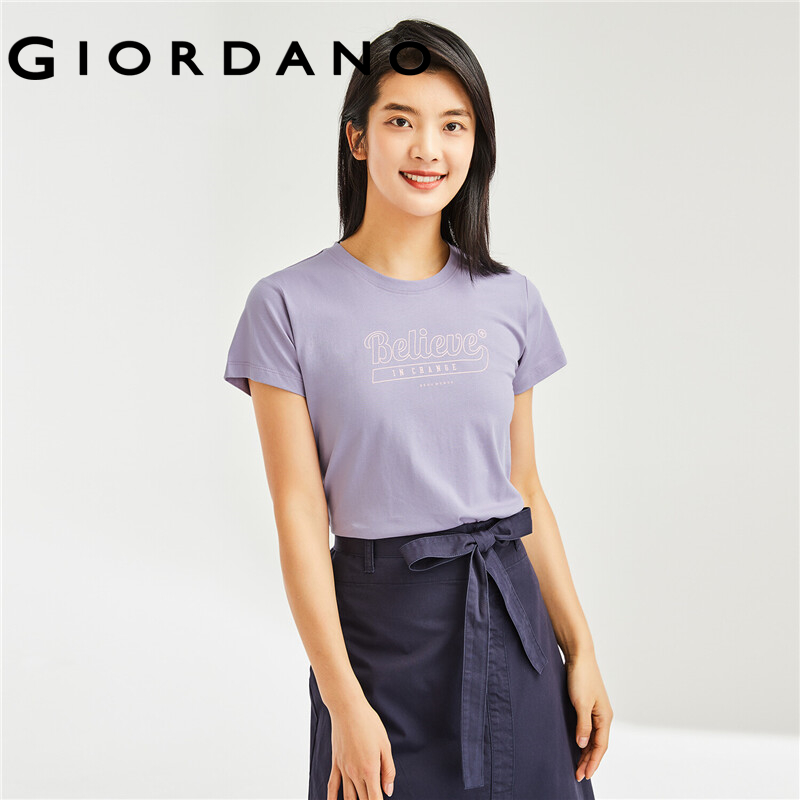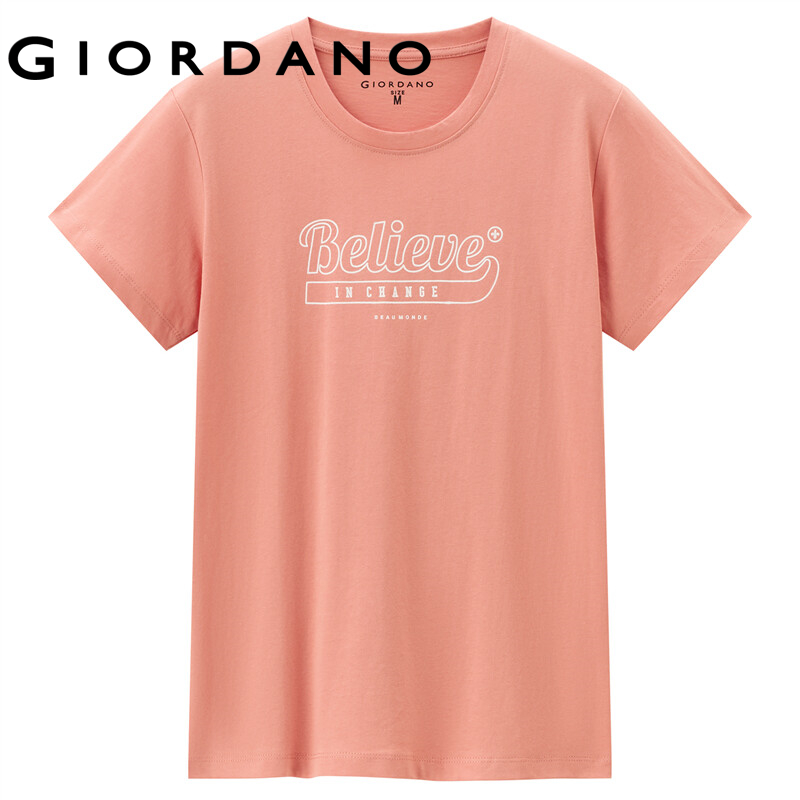 GIORDANO Women T-Shirts Letter Print 100% Cotton Summer Casual T-Shirts Crewneck Short Sleeve Simple Basic T-Shirts 13392201