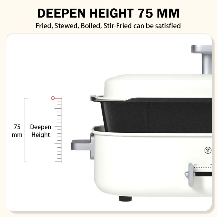 • Versatile Electric Hot Pot - TJean electric hot pot is multiple functional, not only suitable for daily family use but also convenient for gathering with friends. Whether it's sautéing, grilling, shabu-shabu, or steam-ing and hot pot, all dishes can be easily mastered at your fingertips. The unique shape with modern styl-ing adding luxury to your kitchen.