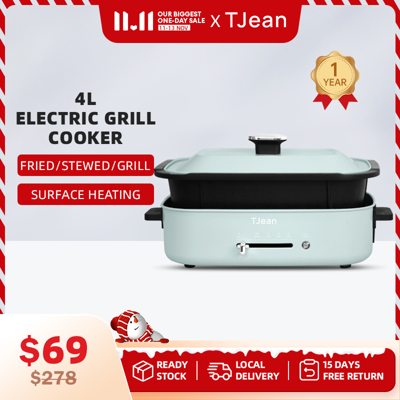 TJean Contact Griller 4L Non-stick Deepen Inner Pot 1200W Multifunction Cooker Hotpot Steamboat Pot Kitchen Appliance Apple Green