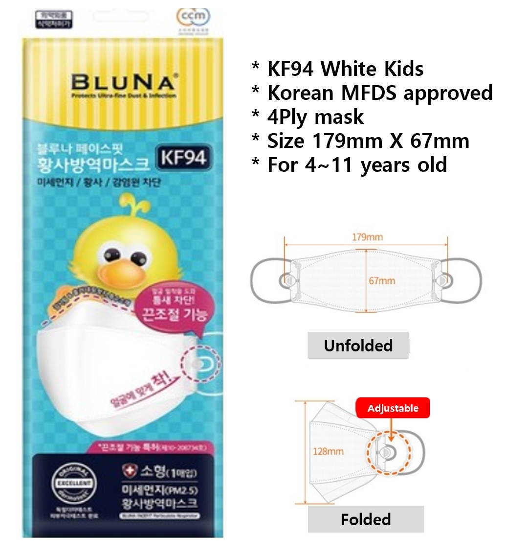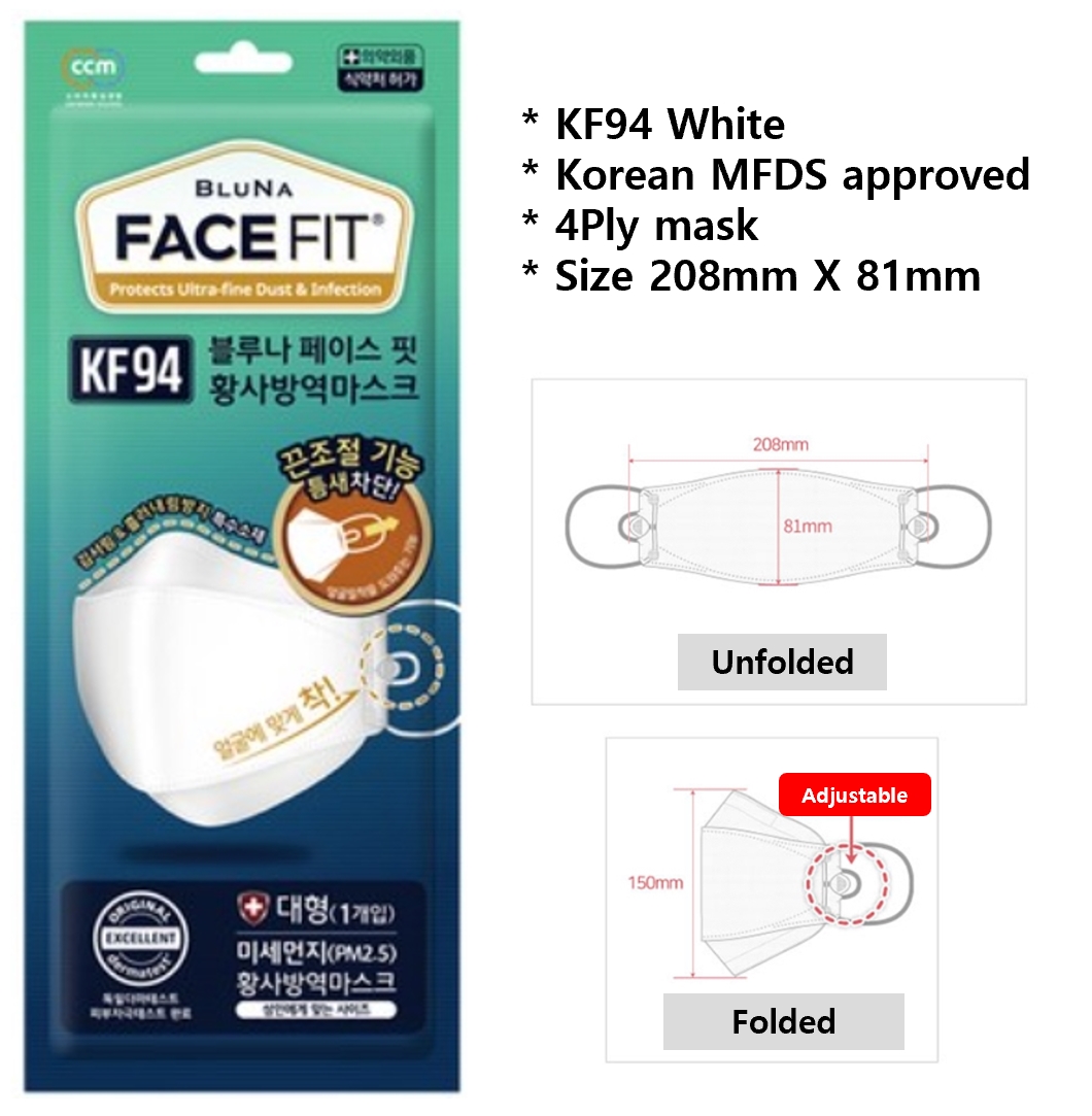 BLUNA FACE FIT mask 4Ply individual packing (10/30PCS) White / Black / Kids [Direct from Korea]