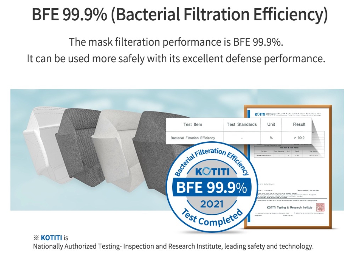 Mask filtration performance is BFE 99.9 %. Protects from bacteria with its excellent defence performance.
