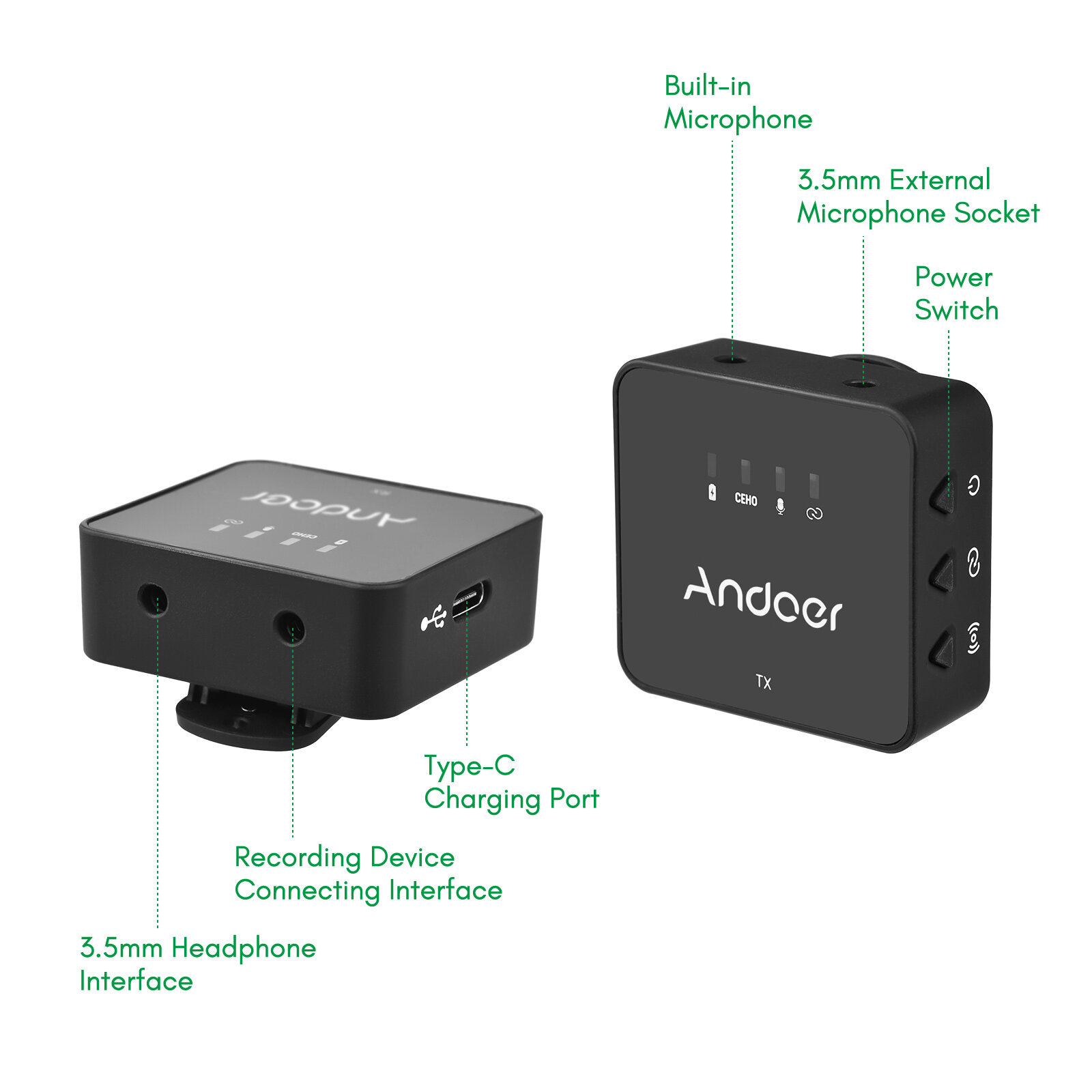 【Real-time Audio Monitoring】The receiver has a 3.5mm earphone interface, supports real-time audio monitoring to ensure clear recording and keep the microphone work properly.