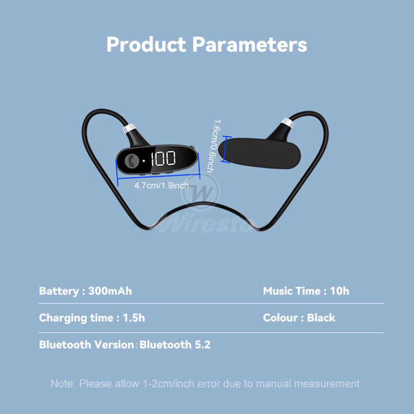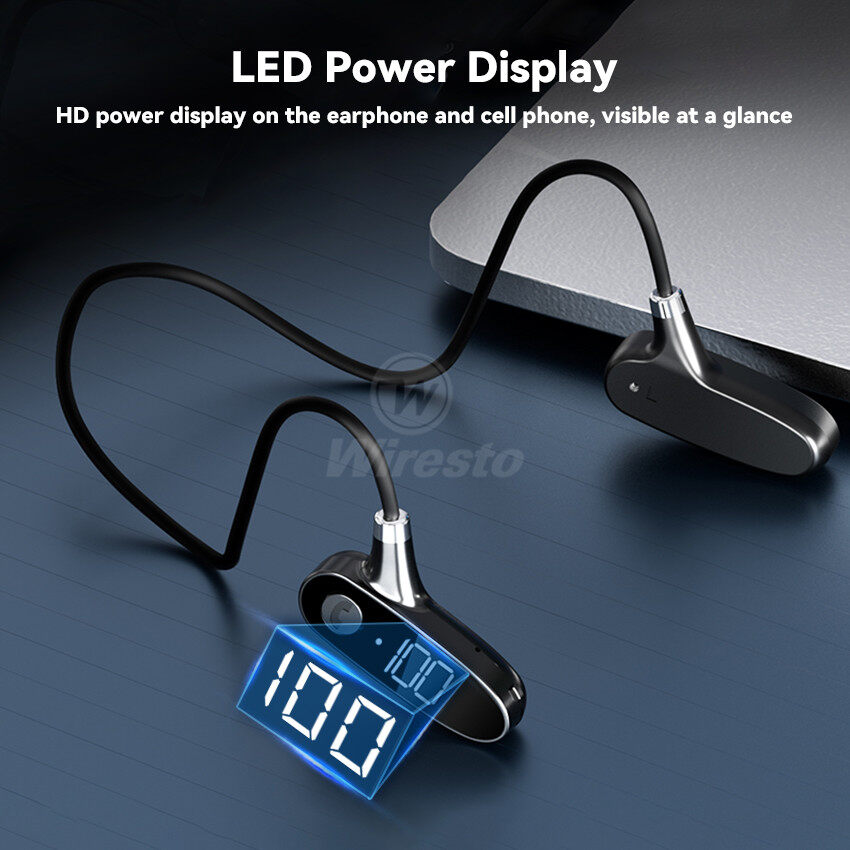 Wiresto Wireless Bluetooth 5.2 Earphone Bone Conduction Headphones Neckband Headset Non-In-Ear Sport Earbuds HD Stereo Sweat-proof Waterproof Earphones for Running Bicycling Hiking Driving Workout