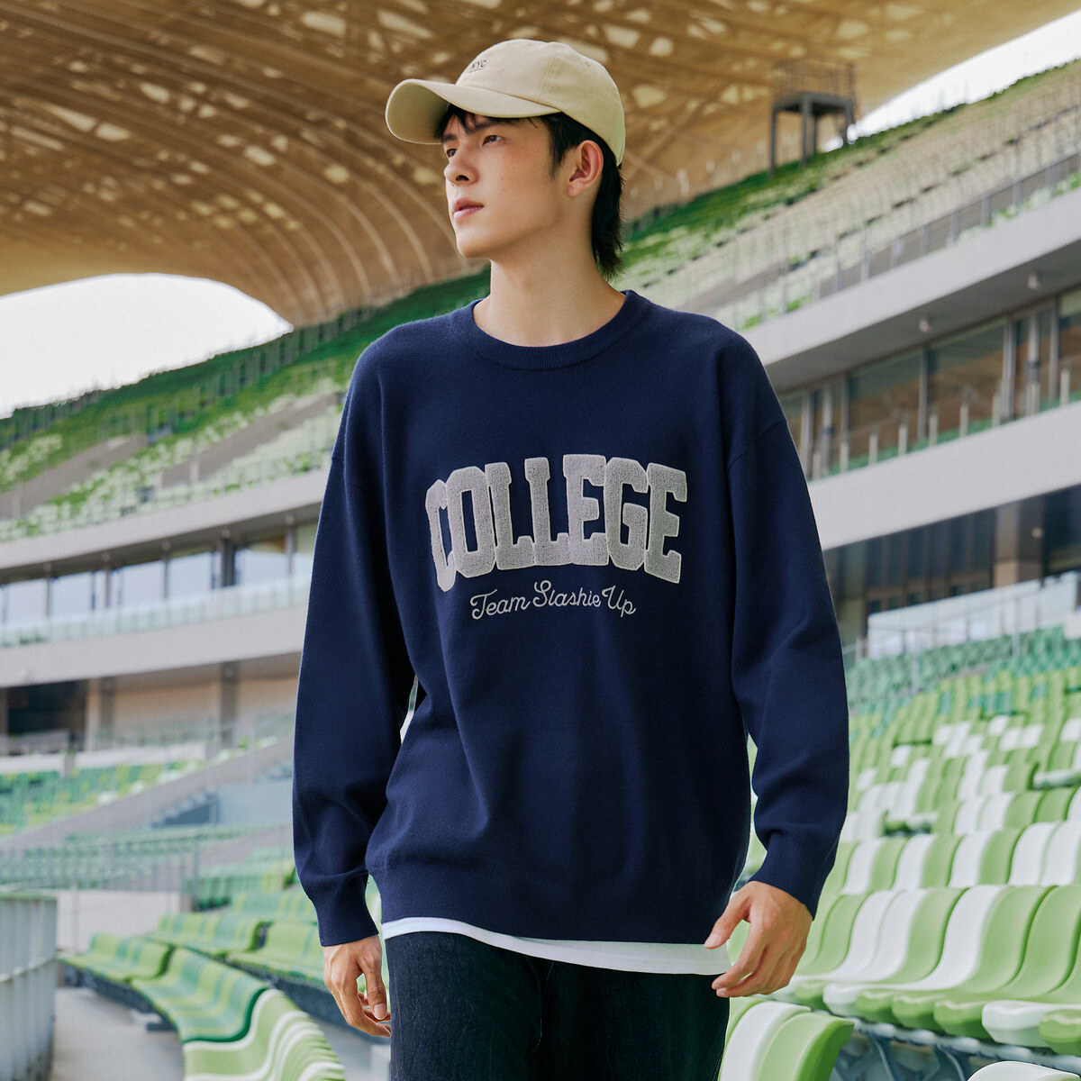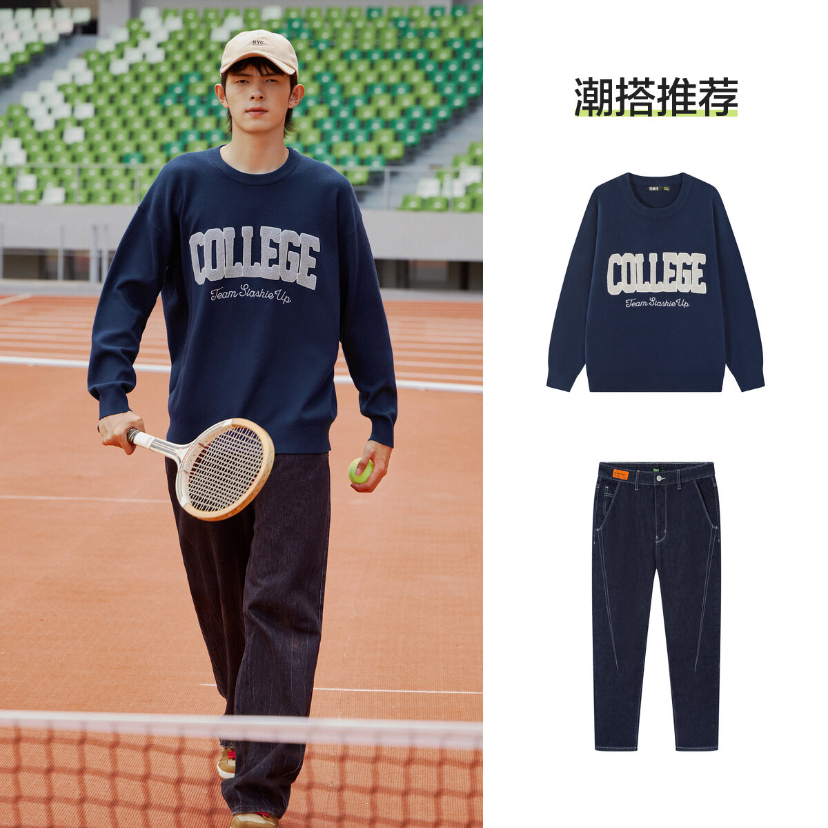 Semir Knitwear Men Oversize Retro American Trend Sweater Campus Alphabet Embroidered Sweater Korean Fan Top