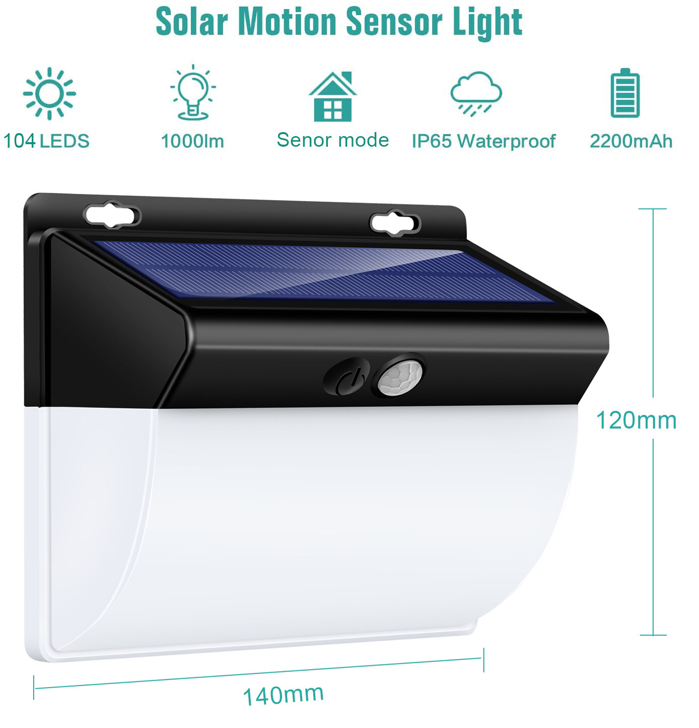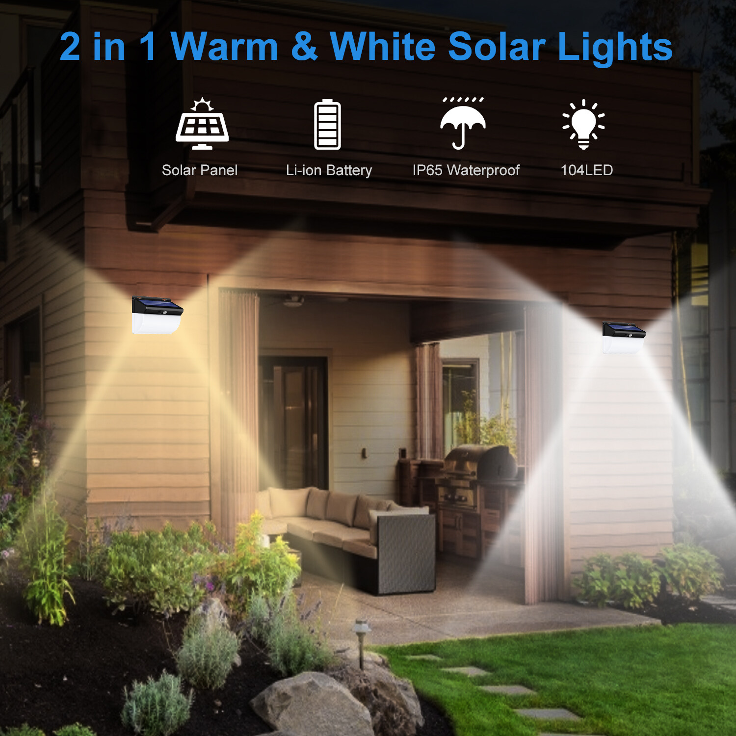 104LED Solar Security Lights Outdoor, Seeway 2 in 1 White and Warm Light Solar Motion Sensor Lights 270ºWide Angle 2200 mAh Solar Powered Lights Waterproof Solar Powered Durable Wall Lights Outside 3
