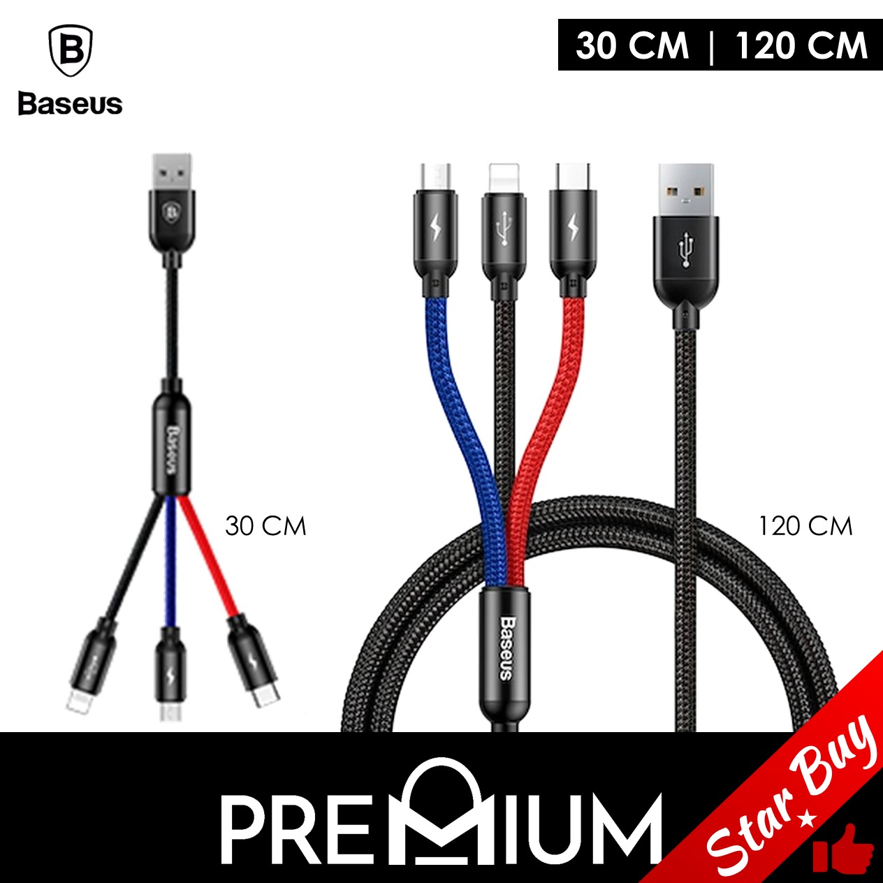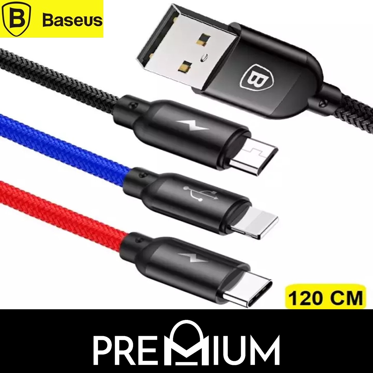 BASEUS Three Primary Colors 30CM 1.2M Multi Head End Ends 3 in 1 Cable Compatible with Phone USB iP 13 12 5.4 6.7 Mini NEW SE 2020 2nd Gen 11 Pro Max Xs Xr 8 7 6 6S Plus iPd Micro USB Samsung Xiaomi