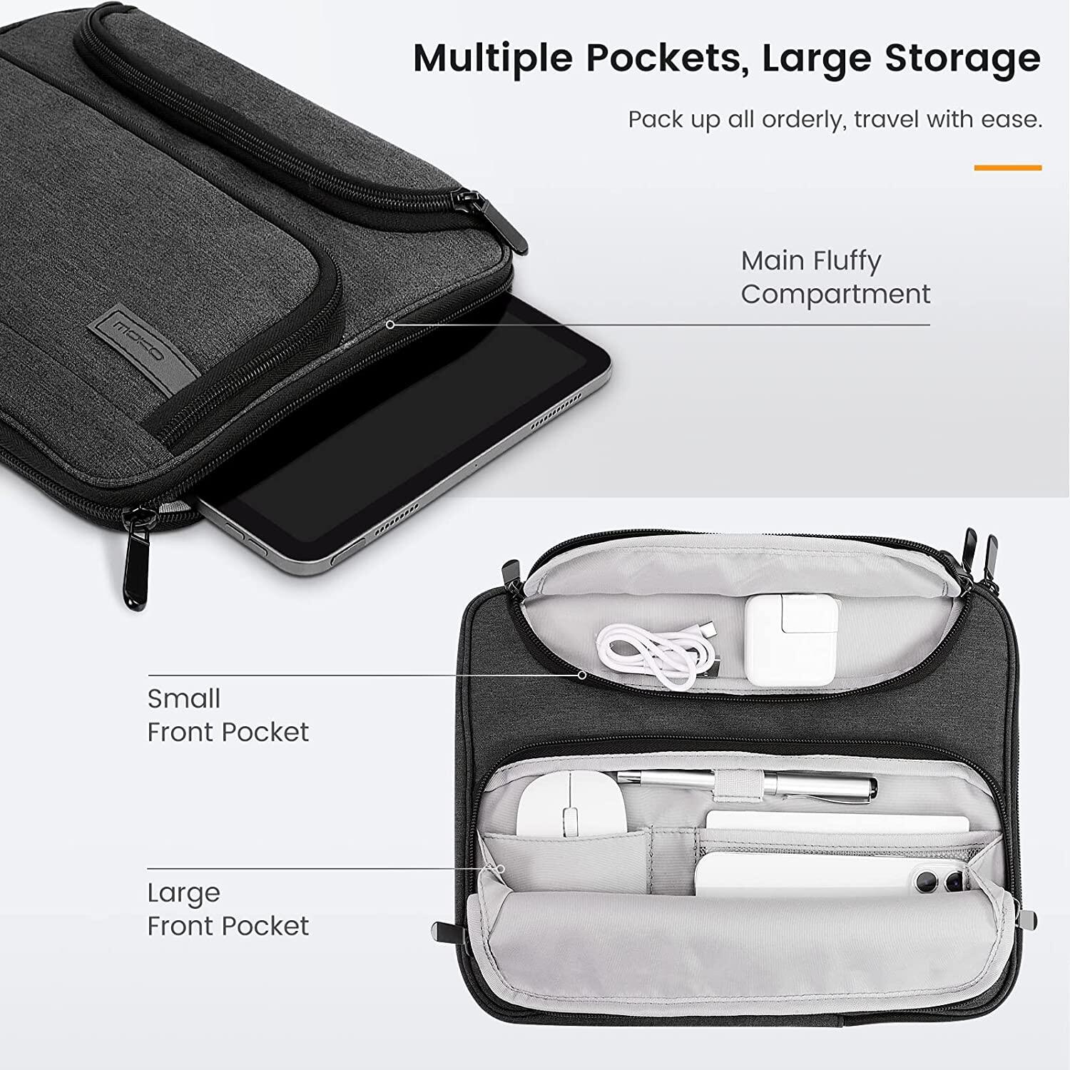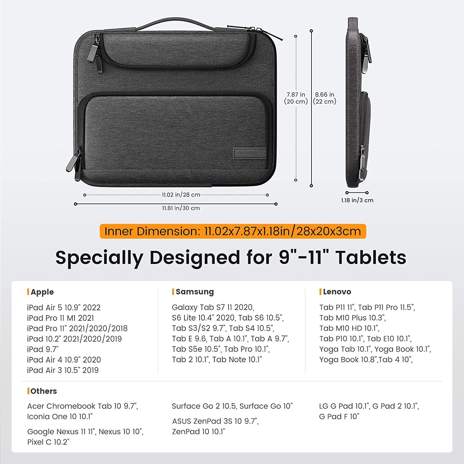 MoKo 9-11 Inch Tablet Sleeve Case, Fits iPad air 5 10.9" 2022, iPad Pro 11 2021-2018, iPad 9/8/7th Gen 10.2, Tab S8 11", Waterproof Polyester Bag with Double Pockets, Retractable Handle