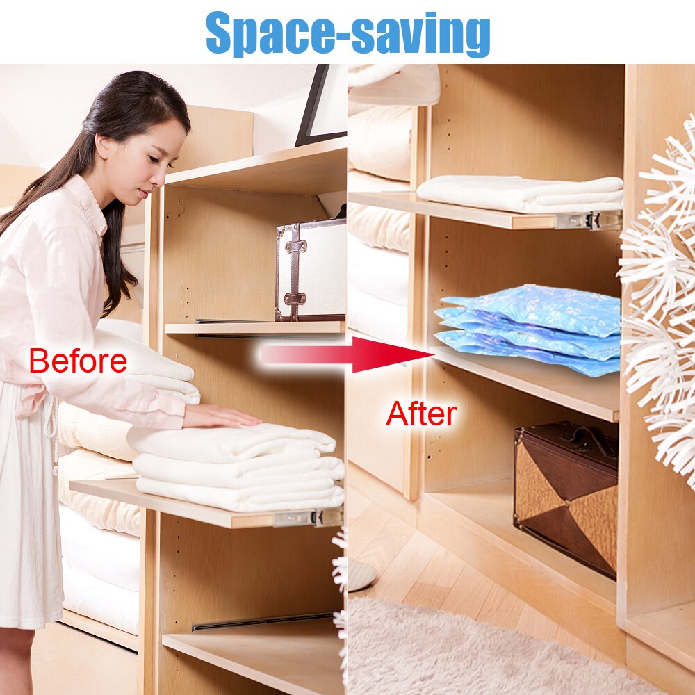 • With these storage bags, you can compress clothes, pillows, throws and seasonal bedding.