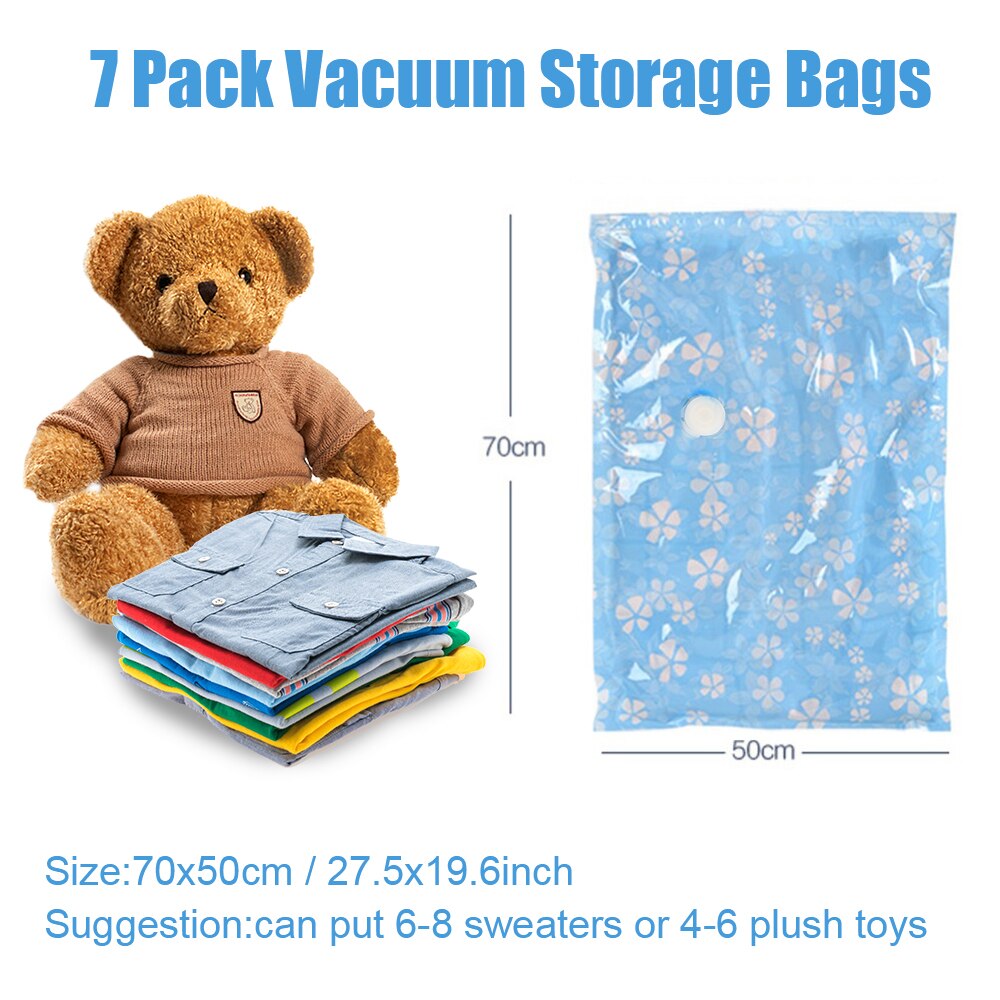 • 7 Pcs Compressed Bags For Clothes Blanket Home Organizer With Hand Pump Reusable Thickened Space Saving Vacuum Storage Bag