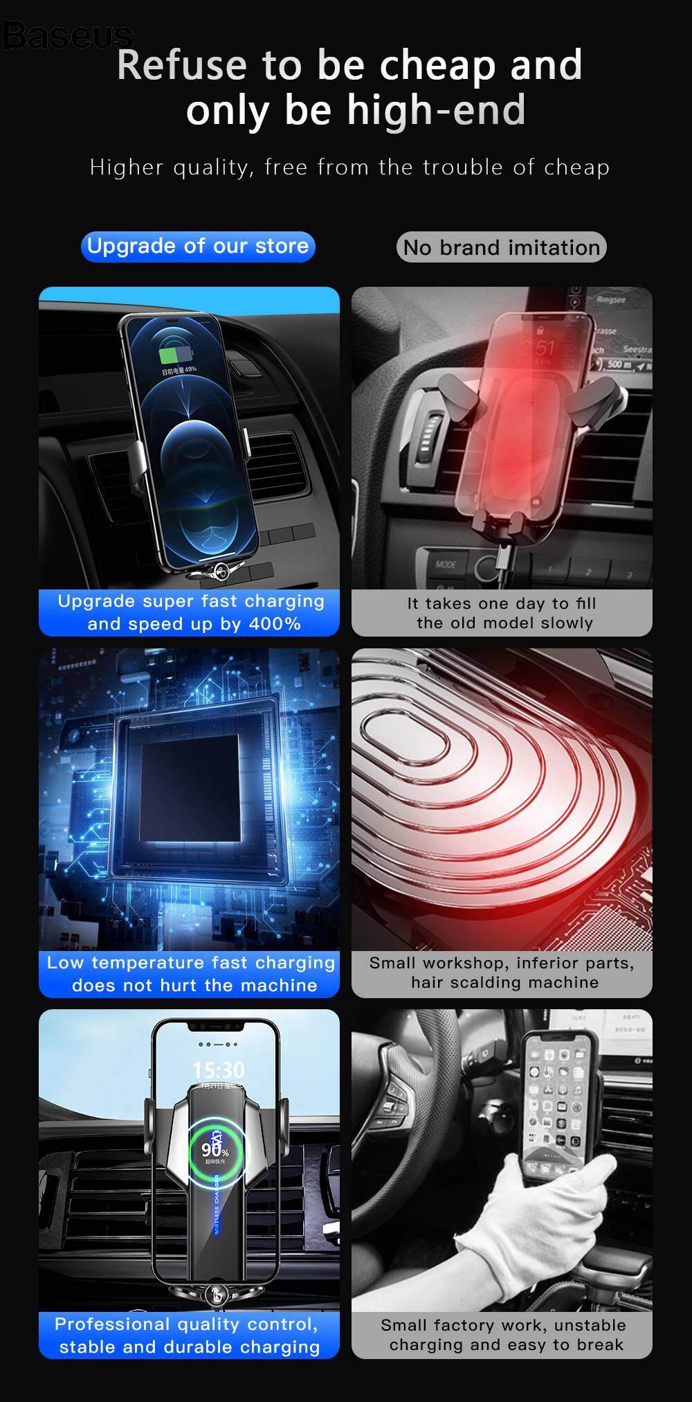 Baseus P9 Electric Locking Car Air Outlet Phone Holder 15W Wireless Charger Universal Cellphone Bracket