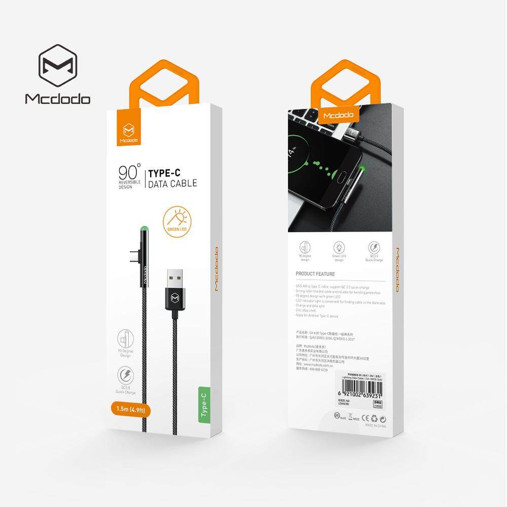 Mcdodo USB 90 Degree Type C 2A Cable for USB-C Mobile Phone Fast Charging QC 3.0 data Cord For Samsung S9+ S8 huawei Mate 20 Pro P30 USB Wire