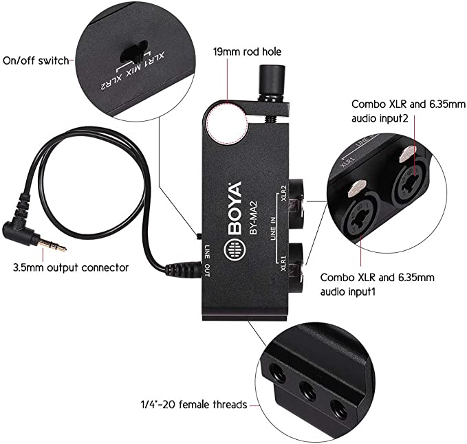 BOYA BY-MA2 Dual channel XLR audio mixer for DSLRs & camcorders