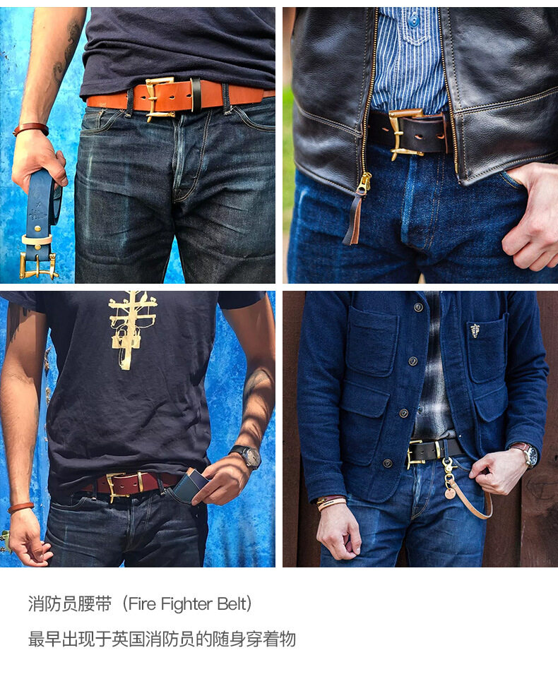 Maden brand tooling style men's young tough guy leather belt American retro top layer planted leather convenient belt Ami khaki firefighter top layer leather belt